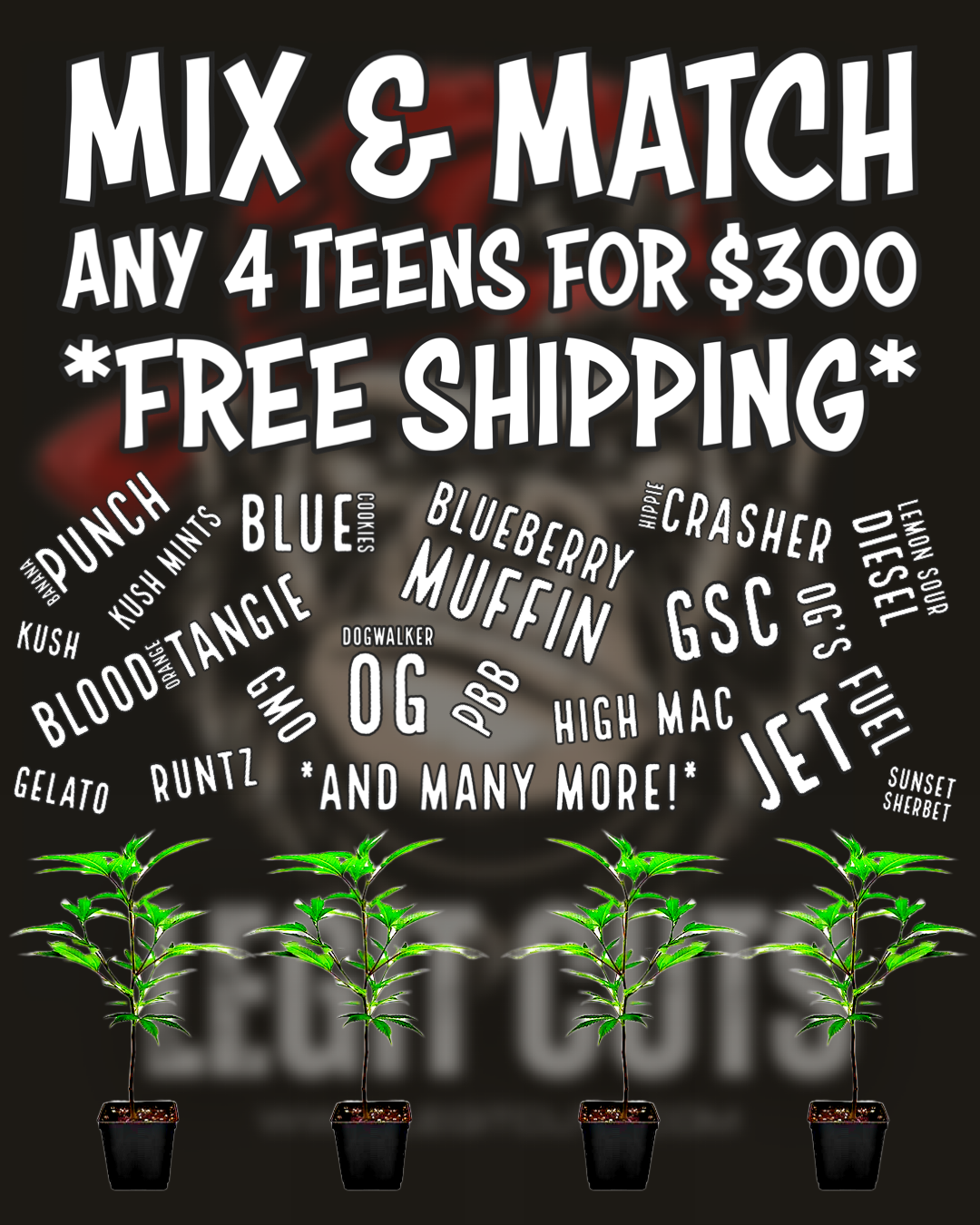 Pick ANY 4 clones from the list below and note your selections in the special instructions box during checkout! Availability is limited on the genetics with an asterisk so please inquire beforehand regarding any of those.
