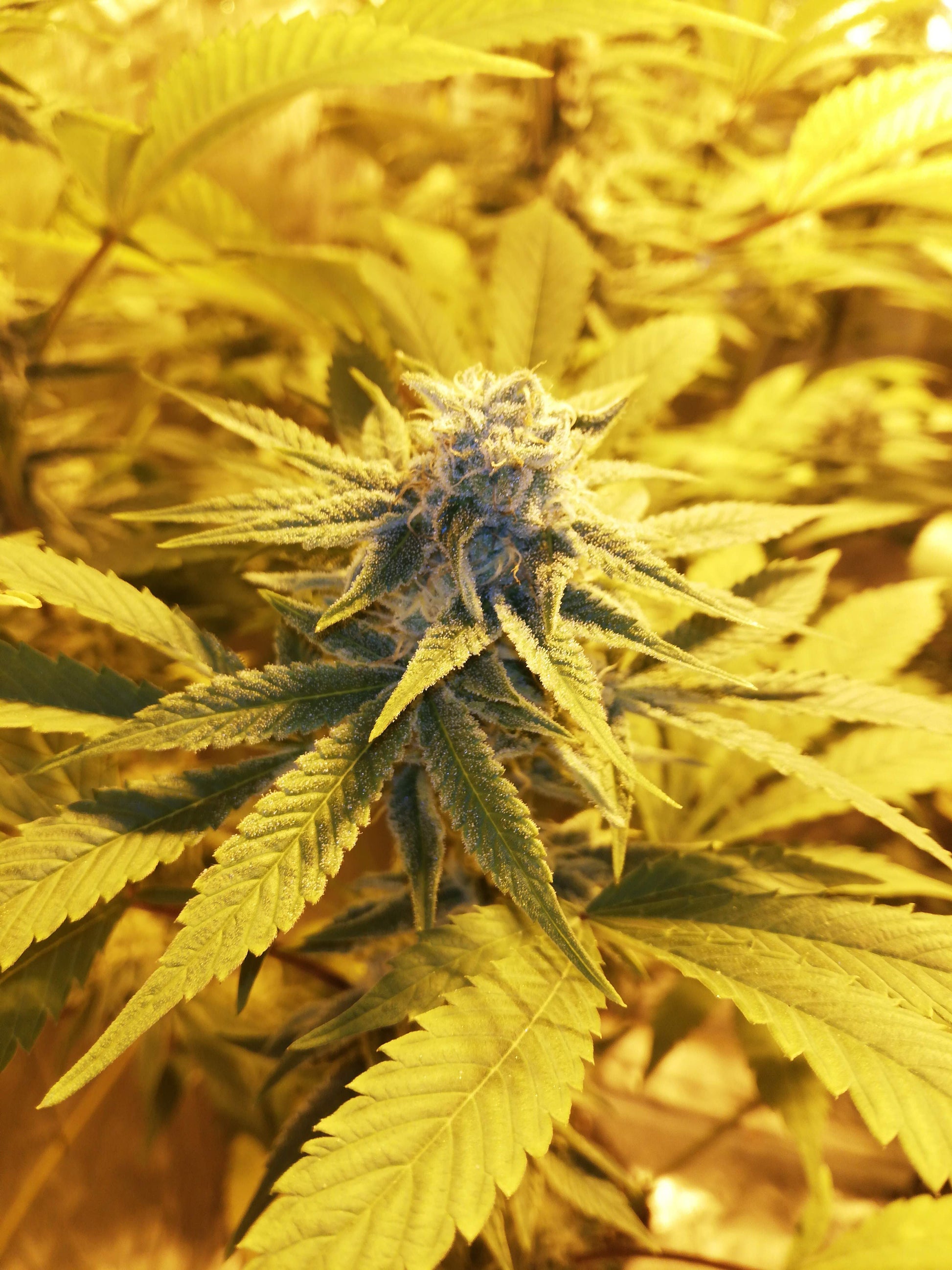 Appearance and Growth Pattern: Papaya Punch exhibits a compact growth pattern with minimal space between buds and nodes. Its heart-shaped green nugs are densely packed, adorned with a thick layer of opaque, milky-white trichomes. Growers recommend using outward trellis training to manage the strain's ambitious leaf and trichome production, ensuring a heavy yield without compromising on quality.